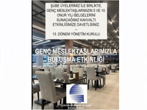 Şubemiz tarafından organize edilen, bu dönem sonuncusunu gerçekleştirdiğimiz, Genç Mühendislerle buluşma ve Meslekte 5 ve 10. Onur yılı belgelerini sunacağımız etkinliğimize tüm üyelerimiz davetlidir. Telefon, mail, WhatsApp kanallarımız üzerinden Şubemize kayıt yaptırabilirsiniz.
